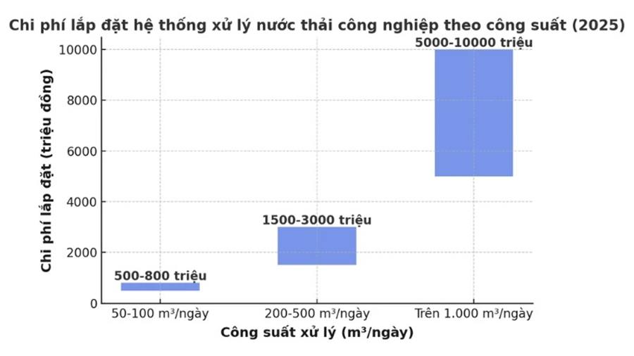Biểu đồ chi phí lắp đặt hệ thống xử lý nước thải công nghiệp theo công suất ước tính
